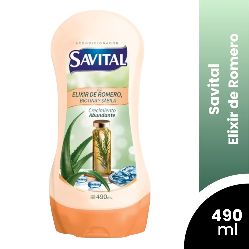 • El Acondicionador Savital Elixir de Romero está elaborado con extracto de romero, conocido por sus propiedades revitalizantes que estimulan y fortalecen la fibra capilar, y con sábila, que hidrata y repara profundamente.