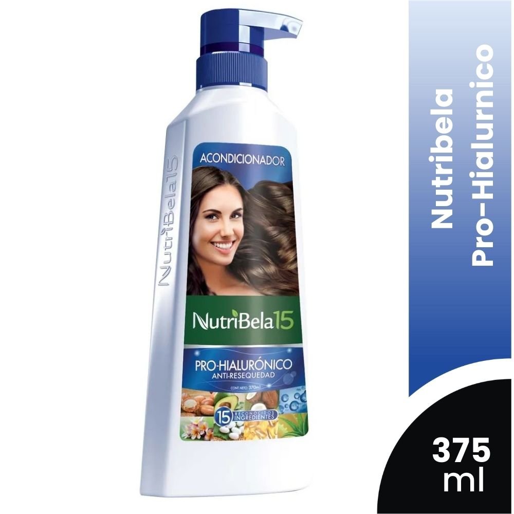 • Nutribela Pro- HialuronicoEl Acondicionador Nutribela Pro-Hialurónico está formulado con ácido hialurónico y biokeratina, que ayudan a hidratar profundamente, suavizar y desenredar el cabello, dejándolo manejable, brillante y con una apariencia saludable. Su acción intensiva rellena y nutre la fibra capilar desde la raíz hasta las puntas, aportando elasticidad y reduciendo el frizz, ideal para cabellos resecos o dañados que necesitan una reparación y humectación profunda.